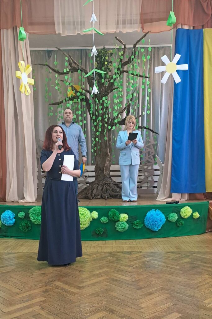 Під час святкового заходу з теплими словами до учнів, педагогів та батьків звернулася директорка школи — Литвиненко Дарія.